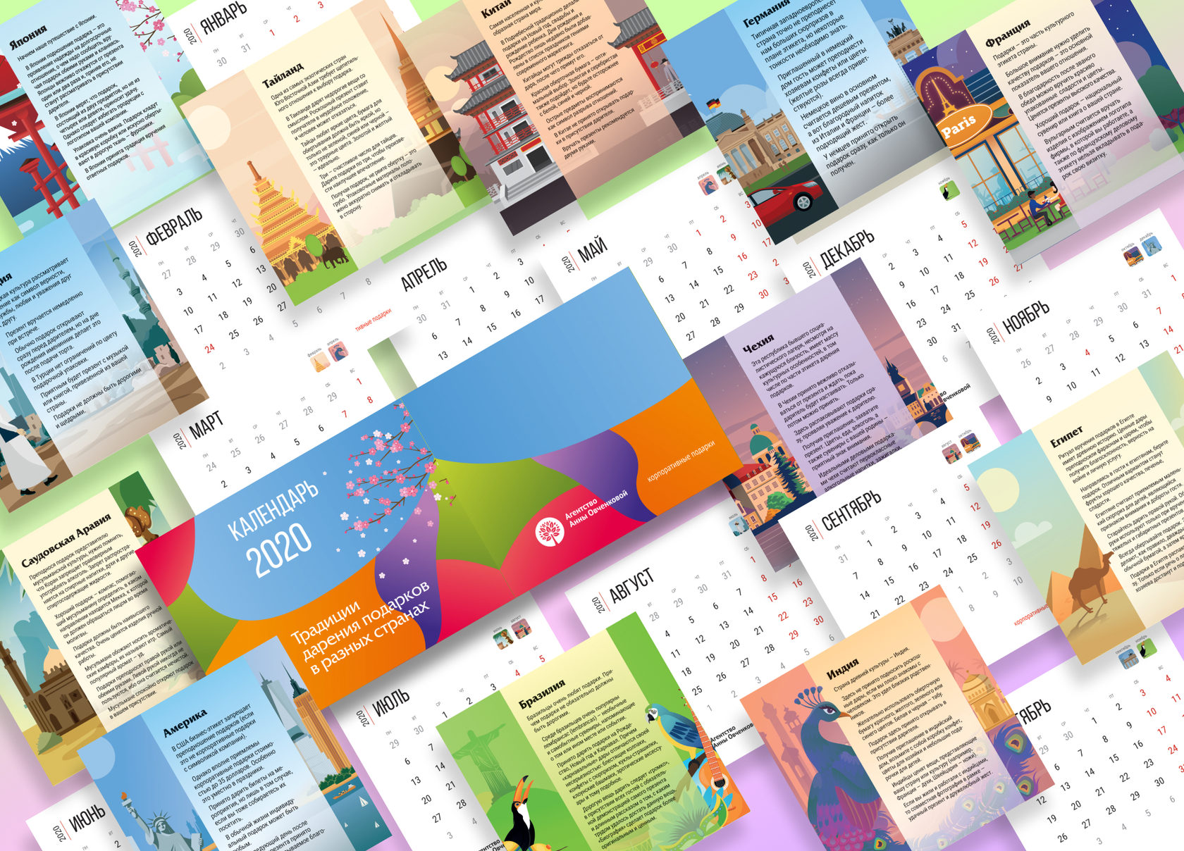 Разработка дизайна и верстка корпоративного календаря в Агентстве Анны Овченковой