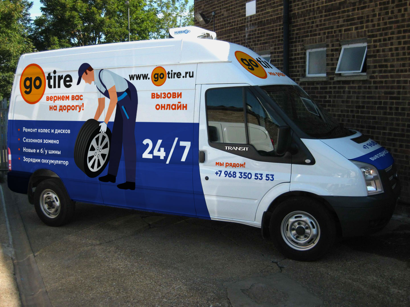 Разработка концепта брендирования автомобиля для компании выездного шиномонтажа и автосервиса